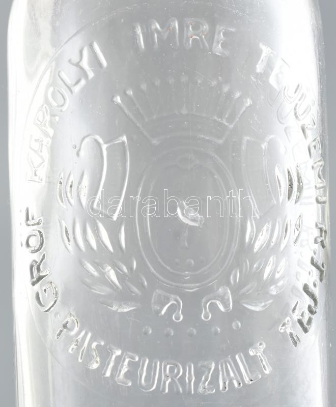 Leírás: gróf Károlyi Imre tejüzem rt. dombornyomott üveg, kopásnyomokkal. 20 cm