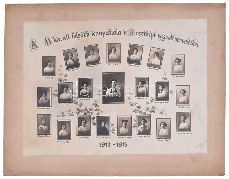 1913 Pozsony, M. kir. áll. felsőbb leányiskola növendékei tabló karton... https://www.darabanth.com/hu/421-Gyorsarveres/421.0/Fotomuveszet/Foto~500021/1913-Pozsony-M-kir-all-felsobb-leanyiskola-novendekei-tablo-kartonon-Mindszenty-fenykep~II2468300