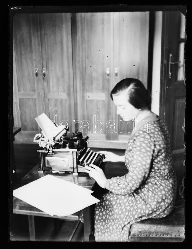 Nő írógépnél, fotónegatív, 12×9 cm https://www.darabanth.com/hu/421-Gyorsarveres/421.0/Fotomuveszet/Foto~500021/No-irogepnel-fotonegativ-12C3979-cm~II2672599