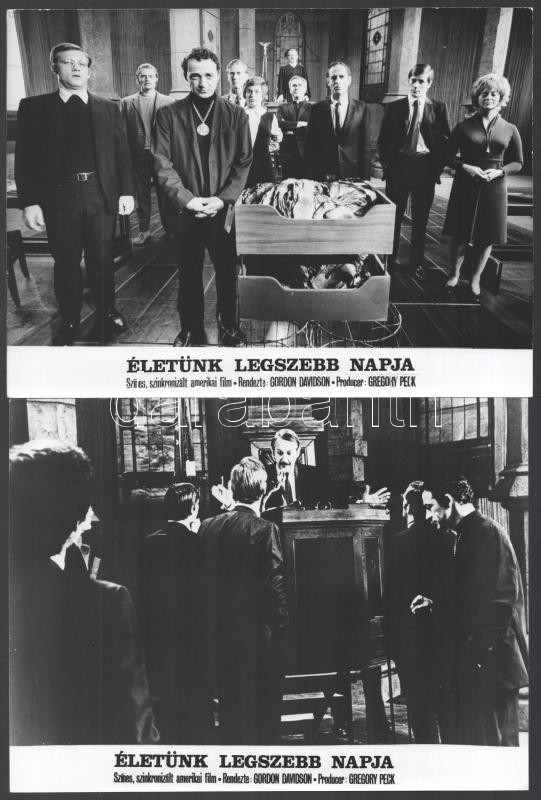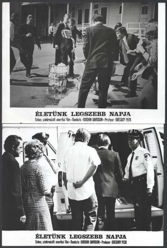 cca 1974 ,,Életünk legszebb napja" című amerikai film jelenetei és szereplői, 13 db vintage produkciós filmfotó, ezüst zselatinos fotópapíron, a használatból eredő kisebb hibákkal, 18x24 cm