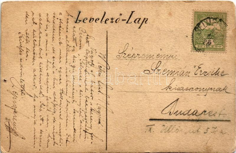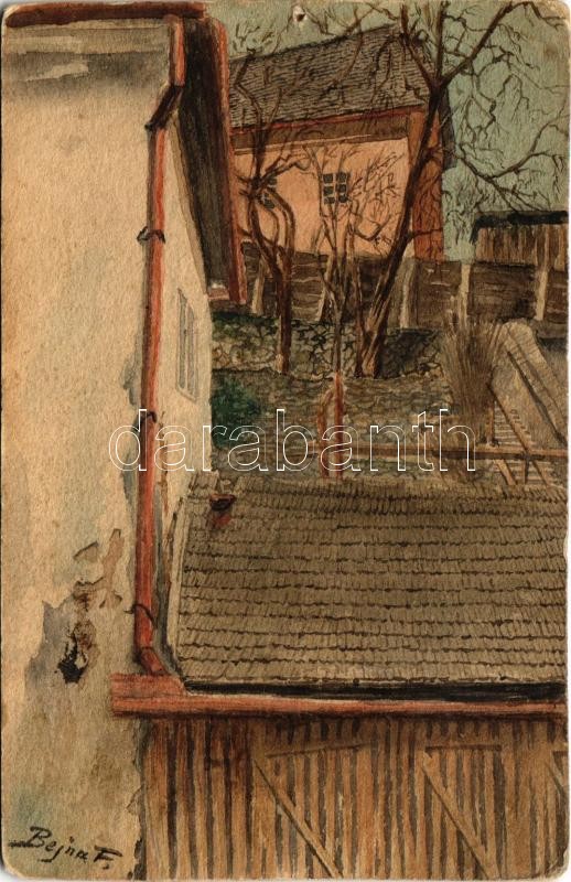 Selmecbánya, Schemnitz, Banská Stiavnica; Kézzel rajzolt és festett egyedi művészlap / Hand-drawn and hand-painted art postcard s: Bejna Ferenc (lyuk / pinhole)