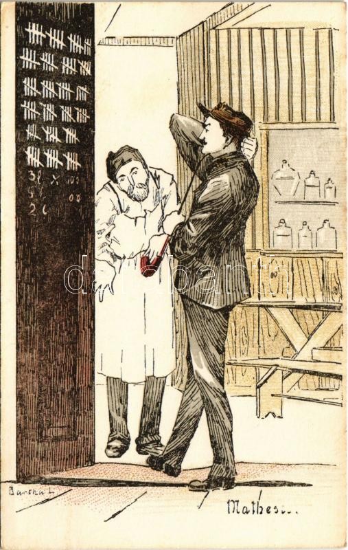 Selmecbánya, Schemnitz, Banská Stiavnica; Mathes... A Selmeci Diákéletből V. Studentika. Röttig-Romwalter nyomda rt. Sopron / Studentica art postcard s: Bartha L. (EK)