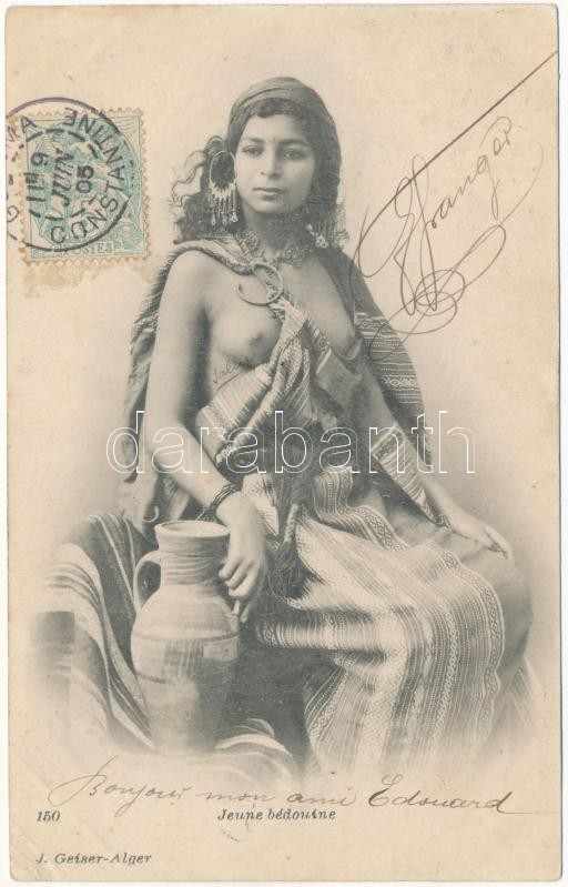 1905 Jeune Bédouine / half-naked Beduin woman (EK) https://www.darabanth.com/hu/421-Gyorsarveres/421.0/Kepeslapok/Folklor~1500022/1905-Jeune-Bedouine-half-naked-Beduin-woman-EK~II2662340