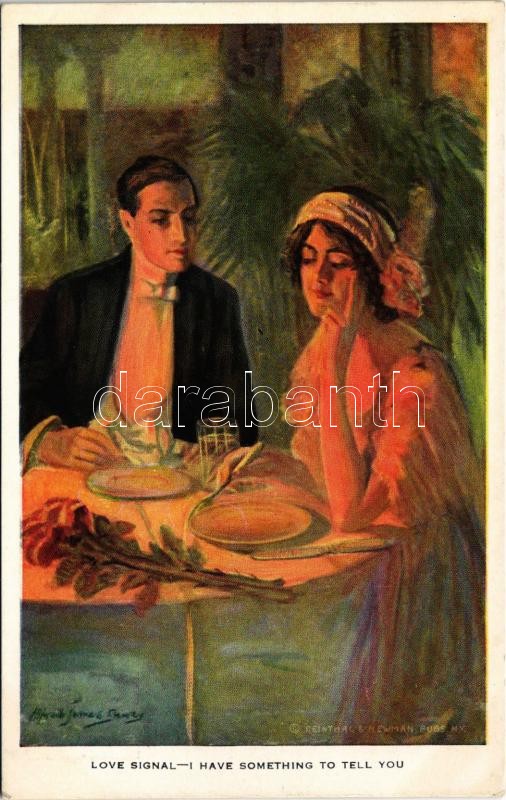 Leírás: 1920 "Love Signal - I Have Something To Tell You" Lady art postcard, romantic couple. Reinthal & Co. No. 458. s: Alfred James Dewey