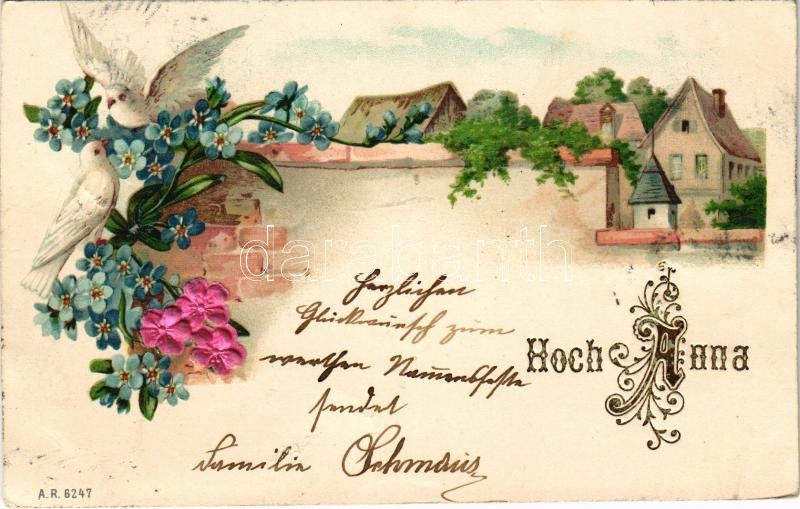 1899 (Vorläufer) Hoch Anna / Name Day greeting art postcard with silk ... https://www.darabanth.com/hu/421-Gyorsarveres/421.0/Kepeslapok/Udvozlolapok-Unnepek~1500051/1899-Vorlaufer-Hoch-Anna-Name-Day-greeting-art-postcard-with-silk-flowers-litho-EK~II2670920