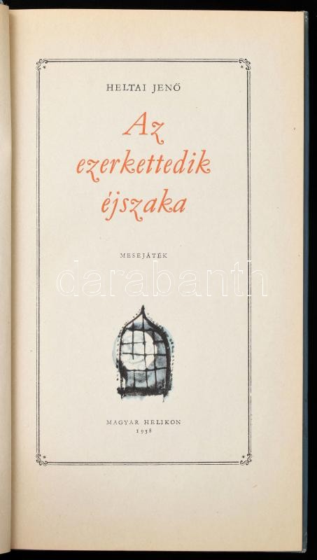Heltai Jenő: Az ezerkettedik éjszaka. Kondor Lajos rajzaival. Bp., 1958, Magyar Helikon. Kiadói aranyozott egészbőr-kötésben, a gerincen kis sérüléssel, kopásnyomokkal. Számozott (300./1000) példány!