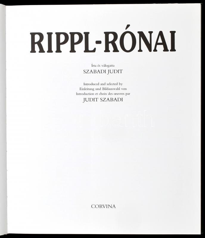 Szabadi Judit: Rippl-Rónai. Bp.,1993, Corvina. Harmadik kiadás. Magyar, angol, német és francia nyelven. Gazdag képanyaggal, Rippl-Rónai József műveinek reprodukcióival illusztrálva. Kiadói egészvászon-kötés, kiadói papír védőborítóban.