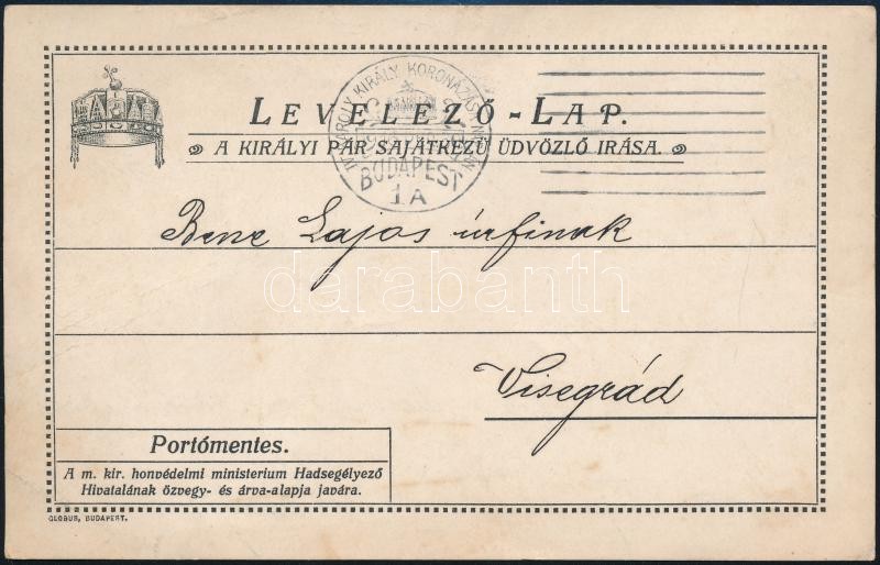 1916 Bp., IV. Károly és Zita királyné által írt nyomtatott képeslap hő... https://www.darabanth.com/hu/421-Gyorsarveres/421.0/Mutargy-papirregiseg-egyeb/Militaria~500028/1916-Bp-IV-Karoly-es-Zita-kiralyne-altal-irt-nyomtatott-kepeslap-hos-katonaknak~II2672823