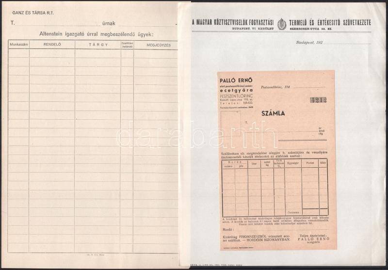 Leírás: cca 1900-1940 8 db vegyes fejléces számla, közte kitöltetlen is