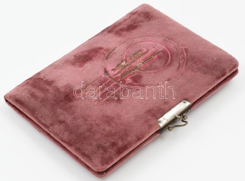 Leírás: 1913-1915 Bp., emlékkönyv, kézzel írt bejegyzésekkel, rajzokkal, bársony borítású kapcsos füzetben
