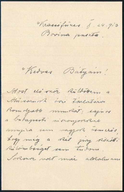 1913 Bottlik Tibor (1884-1974) erdélyi magyar festőművész, szobrász, grafikus.autgráf levele Kézdi-Kovács László (1864-1942) festőművésznek , melyben közbenjárását kéri borítkkal
