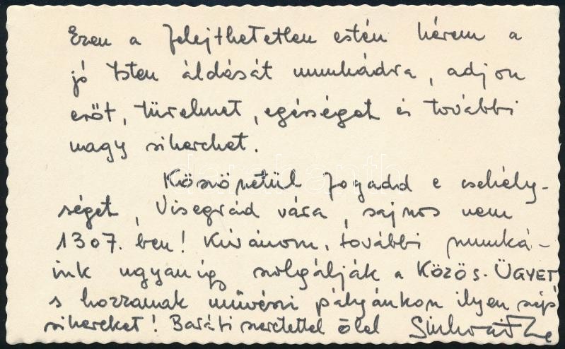 1971 Sinkovits Imre (1928-2001) színész nagyon meleg hangvételű gratuláló levele Marton Endre rendezőnek a "Csák végnapjai" című darab nemzeti színházbeli bemutatója alkalmából ("Lám mégis a Nemzet-i Szívét Árpád-isták vére táplálja!"), saját kezű aláírásával, eredeti borítékjában