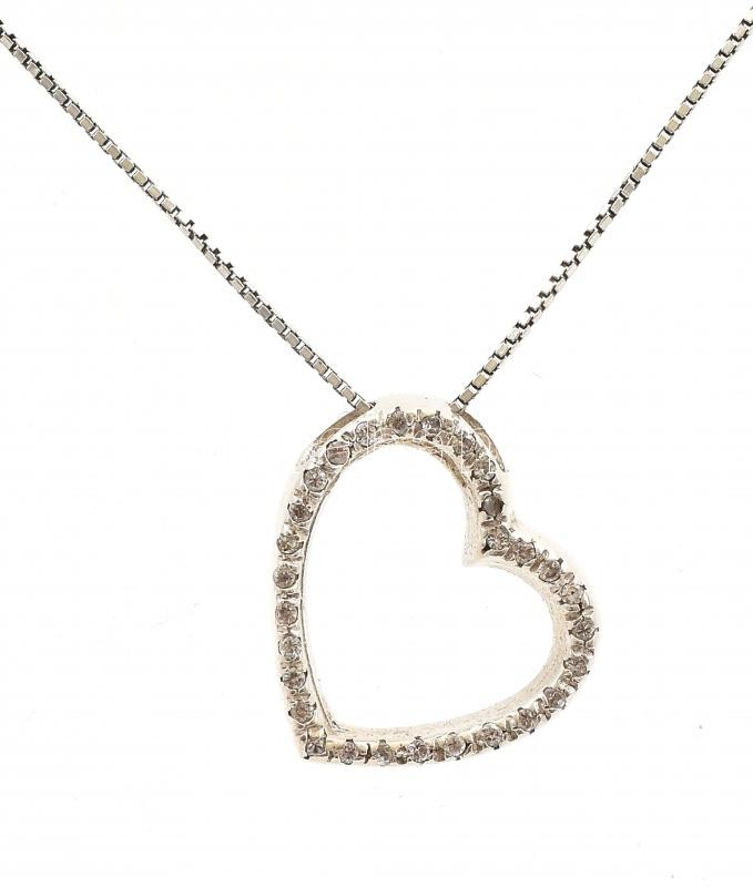 Leírás: Ezüst (Ag) nyaklánc szív medállal, köves. 5,2 g