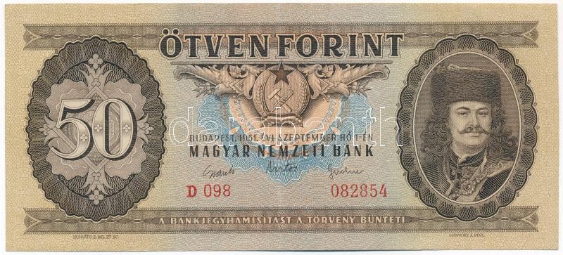 Leírás: 1951. 50Ft "D 098 082854" T:III szép papír