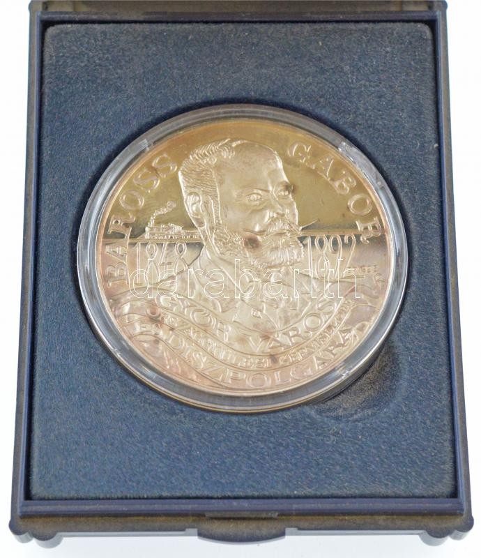 1998. "Győr Megyei Jogú Város Közgyűlése / Győr város országgyűlési képviselője, díszpolgára - Baross Gábor - 1848-1892" jelzett Ag emlékérem dísztokban (31,1g/0.925/42,5mm) T:1 (eredetileg PP) patina
