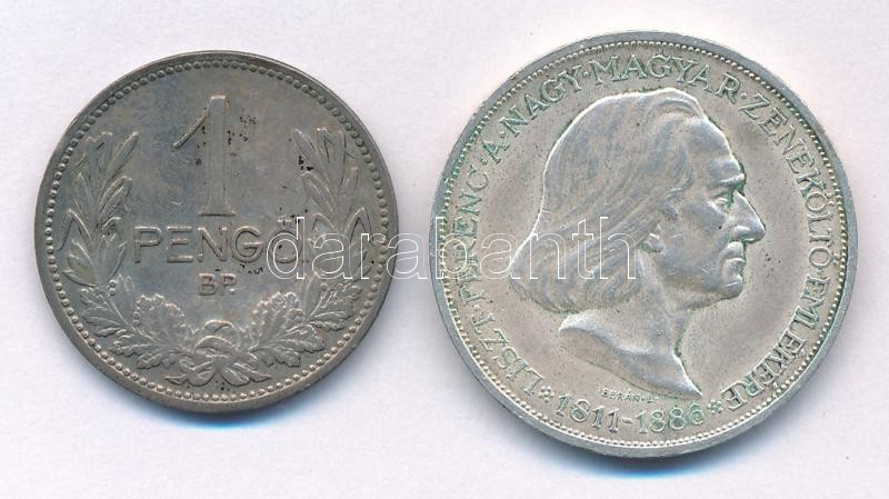 Leírás: 1927. 1P Ag + 1936. 2P Ag "Liszt" T:2,2- patina, kis ph