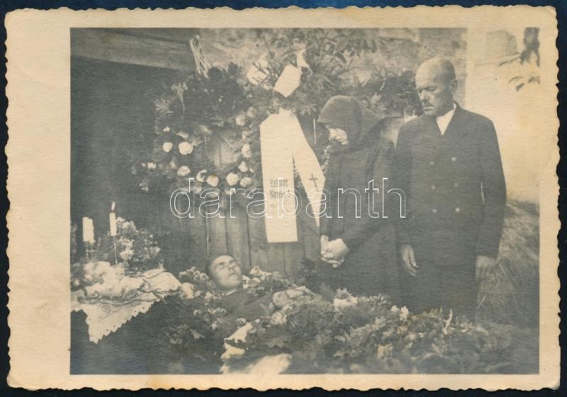 cca 1930 Férfi a ravatalon, fotó, 9×12,5 cm https://www.darabanth.com/hu/422-Gyorsarveres/422.0/Fotomuveszet/Foto~500021/cca-1930-Ferfi-a-ravatalon-foto-9C39712-5-cm~II2679028