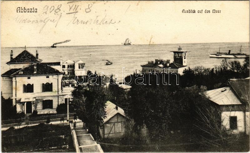 1908 Abbazia, Opatija; Ausblick auf das Meer / sea, villas / tengerpar... https://www.darabanth.com/hu/422-Gyorsarveres/422.0/Kepeslapok/Horvatorszag~1500008/1908-Abbazia-Opatija-Ausblick-auf-das-Meer-sea-villas-tengerparti-villak-Atelier-Betty~II2683562