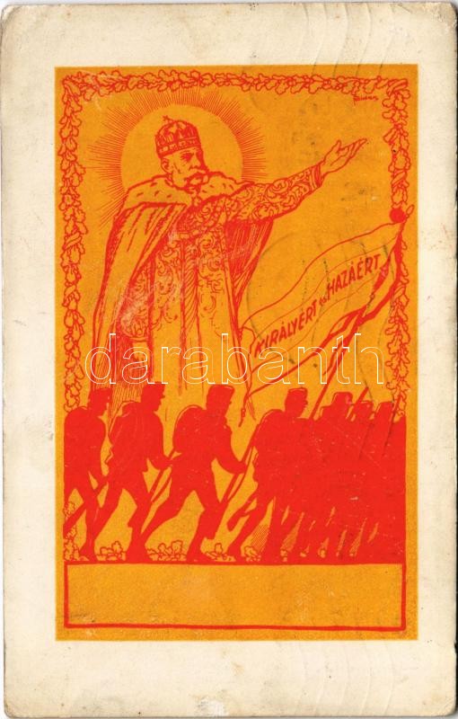 1914 Királyért és hazáért! I. Ferenc József / WWI Austro-Hungarian K.u.K. military art postcard, patriotic propaganda with Franz Joseph I of Austria (EK)