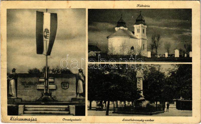 1942 Kiskunmajsa, országzászló, kálvária, Szentháromság szobor (EK) https://www.darabanth.com/hu/422-Gyorsarveres/422.0/Kepeslapok/Magyarorszag~1500004/1942-Kiskunmajsa-orszagzaszlo-kalvaria-Szentharomsag-szobor-EK~II2679220