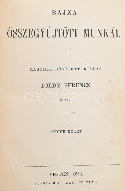 Toldy Ferenc: Bajza összegyűjtött munkái, V-VI. kötet. Pest, 1863, Hec... https://www.darabanth.com/hu/422-Gyorsarveres/422.0/Konyvek/Konyvek-Egyeb-ritkasagok~1000023/Toldy-Ferenc-Bajza-osszegyujtott-munkai-V-VI-kotet-Pest-1863-Heckenast-Kiadoi-aranyozot~II2683108