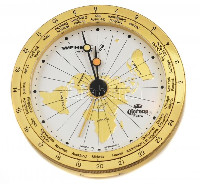Leírás: Corona reklámos utazó óra. Fém tokkal 6 cm