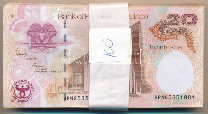 Pápua Új-Guinea 2008. 20K "35 éves a Pápua Új-Guineai Bank" emlékkiadás (100x) kötegelővel, sorszámkövető T:I,I- Papua New Guinea 2008. 20 Kina "35th Anniversary - Bank of Papua New Guinea" commemorative issue (100x) with wrapper, consecutive serials C:UNC,AU Krause P#36