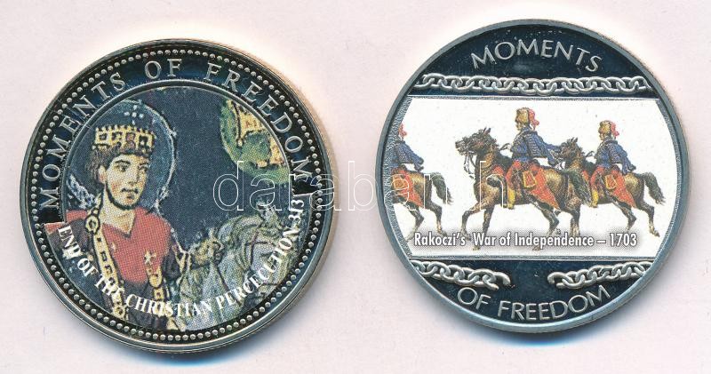 Leírás: Libéria 2001. 10$ Cu-Ni "Szabadság pillanatai - A keresztényüldözés vége - 313" multicolor + 2004. 10$ Cu-Ni "A szabadság pillanatai - Rákóczi-szabadságharc" multicolor T:1- (PP) ujjlenyomat, karc