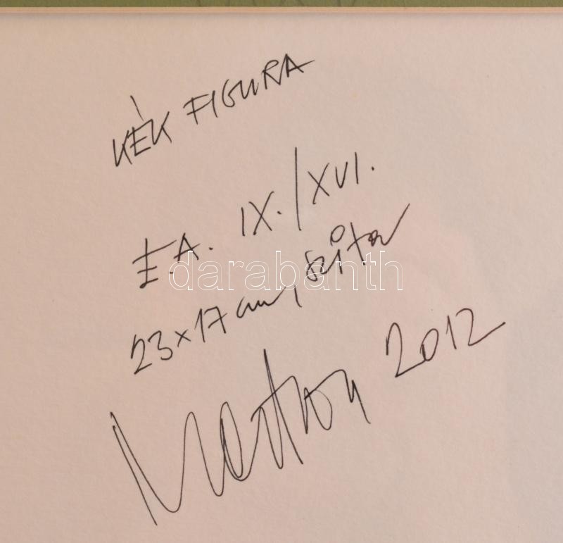 Matzon Ákos (1945-): Kék figura, 2012. Szitanyomat, papír. Jelzett az elején szárazpecséttel, hátoldalán kézzel szignózott. Művészpéldány E.A. IX./XVI. számozással a hátoldalán. 23x17 cm. Üvegezett fakeretben.