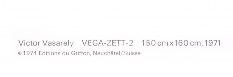 Vasarely Victor (1908-1997): Vega-Zett 2. Heliogravűr, papír. Neuchatel, 1974, Éditions du Griffon. Bal alsó sarkában Fondation Vasarely Aix-En-Provence szárazbélyegzőjével. 50x50 cm. Victor Vasarely (1908-1997): Vega-Zett 2. Photogravure on paper. Neuchatel, 1974, Éditions du Griffon. With Fondation Vasarely Aix-En-Provence stamp. 50x50 cm