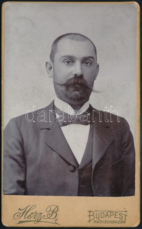 Leírás: Cca 1905 Kóti Dezső főszolgabíró portréja Herz B budapesti műterméből. Vizitkártya.