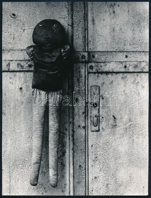 Leírás: Csák Miklós (1933-2013): Bábu ajtóra akasztva. Jelzetlen fotó, 24x18 cm