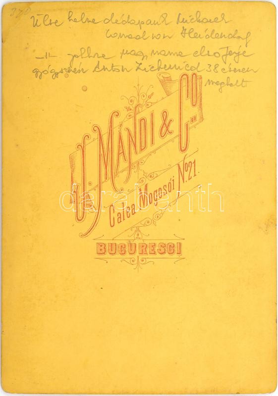 cca 1890 Michael Conrad von Heidenforf és Anton Zibrzid bukaresti gyógyszerészt ábrázoló kabinetfotó / Photo of Anton Zibrzid, a pharmacist from Bucharest. 11x16 cm