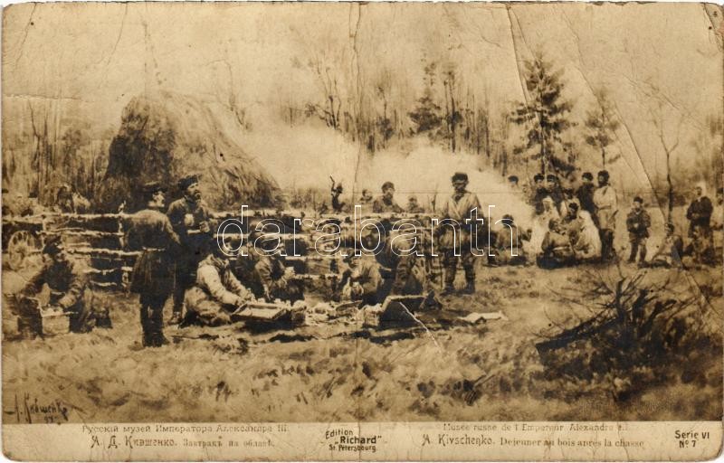 Leírás: Dejeuner au bois apres la chasse / "Lunch in the woods after the hunt" s: A. Kivshenko (fa)