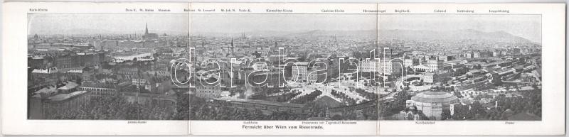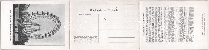 Wien, Vienna, Bécs; Gruss vom Wiener Riesenrade im Prater, Fernsicht über Wien vom Riesenrade / view from the ferris wheel, train. 3-tiled folding panoramacard, advertisement