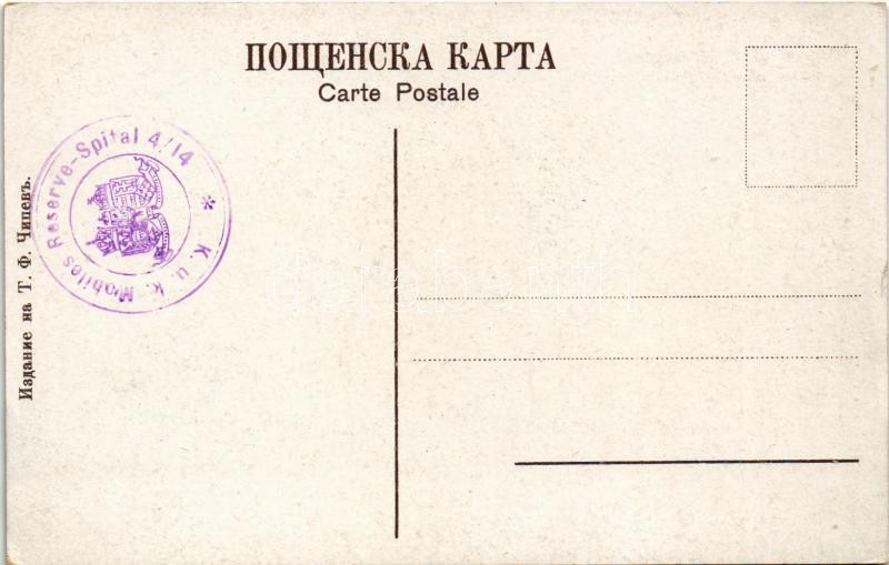 Leírás: Sofia, Sophia, Sofiya; Rue Moskovska / street view, pharmacy + "K.u.K. Mobiles Reserve-Spital 4/14"