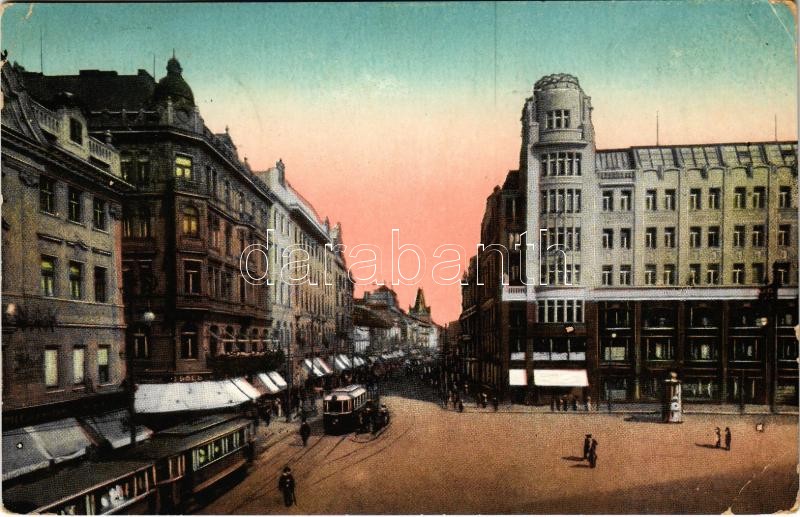 Leírás: 1915 Praha, Prag; Príkopy / street, trams (EK)