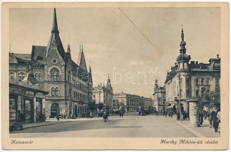 1941 Kolozsvár, Cluj; Horthy Miklós út, gyógyszertár, üzletek / street... https://www.darabanth.com/hu/423-Gyorsarveres/423.0/Kepeslapok/Erdely~1500005/1941-Kolozsvar-Cluj-Horthy-Miklos-ut-gyogyszertar-uzletek-street-view-pharmacy-shops-~II2688650