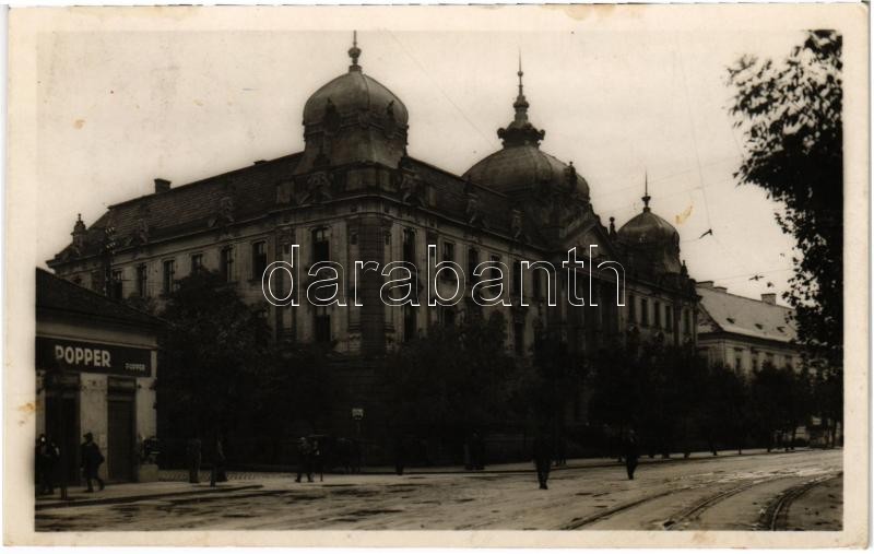Leírás: 1944 Nagyvárad, Oradea; M. kir. Pénzügyigazgatóság, Popper üzlete. Aranyossy György kiadása / financial directorate, shop
