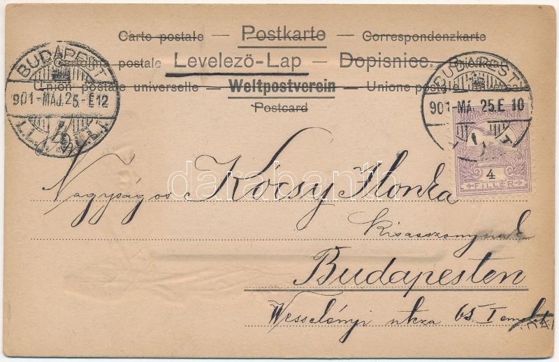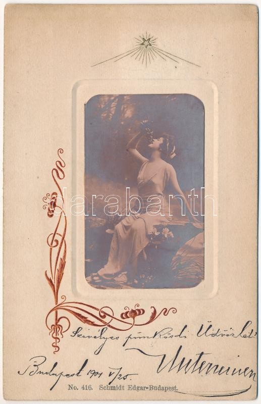 Leírás: 1901 Gently erotic lady with grapes. Schmidt Edgar No. 416. Art Nouveau, Emb. (EK)