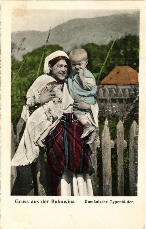 Gruss aus der Bukowina, Rumänische Typenbilder. Verlag v. Leon König No. 781. Czernowitz / Üdvözlet Bukovinából, románok / Greetings from Bukovina, Romanian folklore