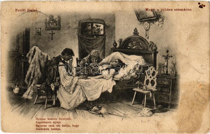 Leírás: "Megy a juhász a szamáron..." Petőfi Dalai. Magyar folklór művészlap / Hungarian folklore art postcard (fl)