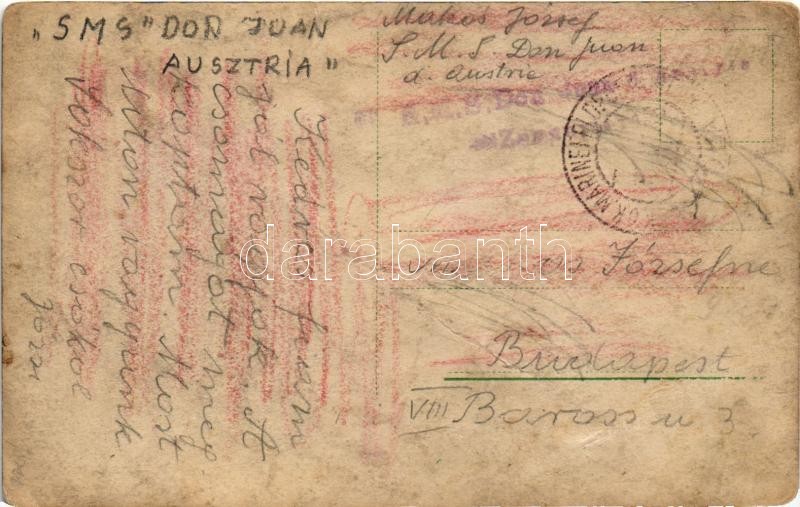 Leírás: Lány matrózblúzban / WWI Austro-Hungarian Navy, K.u.K. Kriegsmarine, girl in mariner clothes + "SMS DON JUAN d'AUSTRIA" "K.U.K. MARINEFELDPOSTAMT POLA" (kopott sarkak / worn corners)