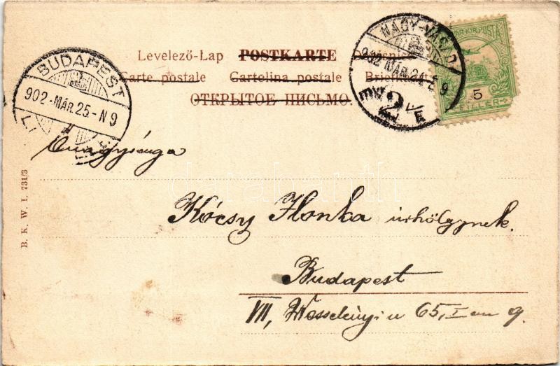 1902 Lady art postcard, romantic couple. B.K.W.I. 731/3. (EK) https://www.darabanth.com/hu/423-Gyorsarveres/423.0/Kepeslapok/Holgyek~1500068/1902-Lady-art-postcard-romantic-couple-BKWI-7313-EK~II2686681