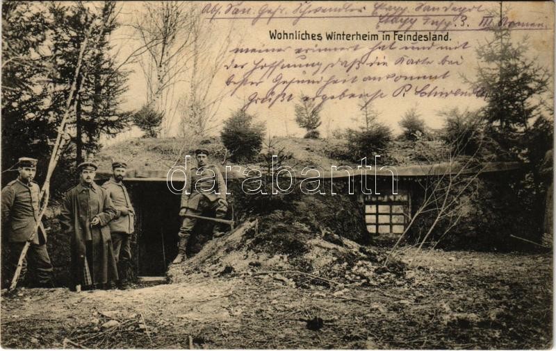 Leírás: 1915 Wohnliches Winterheim in Feindesland / Első világháborús német katonák téli lakja ellenséges országban / WWI German military