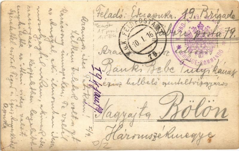 Leírás: 1916 Osztrák-magyar katonák karácsonya a fronton / WWI Austro-Hungarian K.u.K. military, Christmas on the front. photo + "K.u.K. 19. Infanterie-Brigade-Commando" "K.U.K. FELDPOSTAMT 79" (fa)