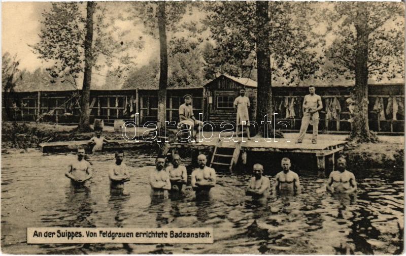 1917 An der Suippes. Von Feldgrauen errichtete Badeanstalt / WWI Germa... https://www.darabanth.com/hu/423-Gyorsarveres/423.0/Kepeslapok/Katonai~1500073/1917-An-der-Suippes-Von-Feldgrauen-errichtete-Badeanstalt-WWI-German-military-bathing-establishm~II2693655