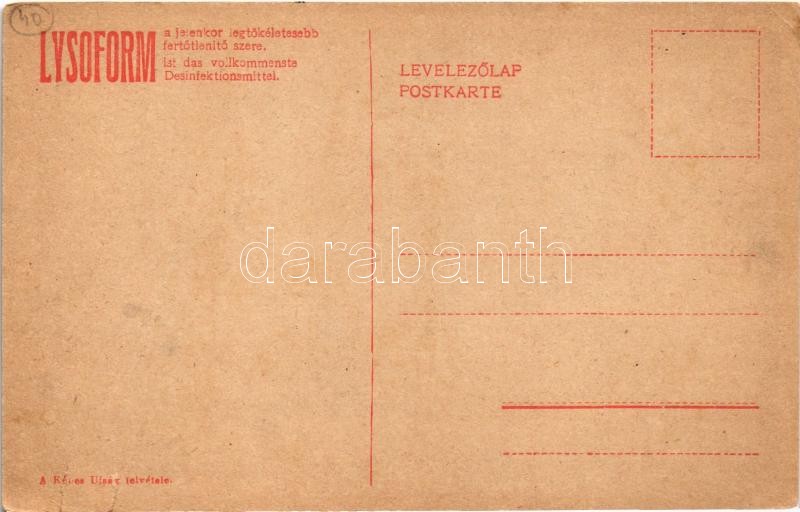 A katonák kedvence. A Képes Újság felvételei. Lysoform fertőtlenítő reklám / Ein Liebling unserer Soldaten / WWI Austro-Hungarian K.u.K. military, soldier with deer. Lysoform disinfectant advertisement (szakadás / tear)