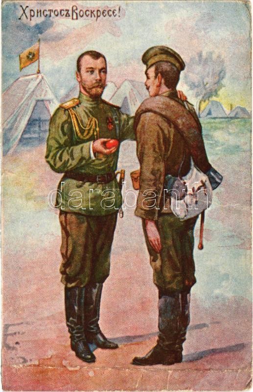 Khristos voskrese! / WWI Russian military art postcard with Easter gre... https://www.darabanth.com/hu/423-Gyorsarveres/423.0/Kepeslapok/Katonai~1500073/Khristos-voskrese-WWI-Russian-military-art-postcard-with-Easter-greeting-and-Tsar-Nicholas-II-no~II2692387
