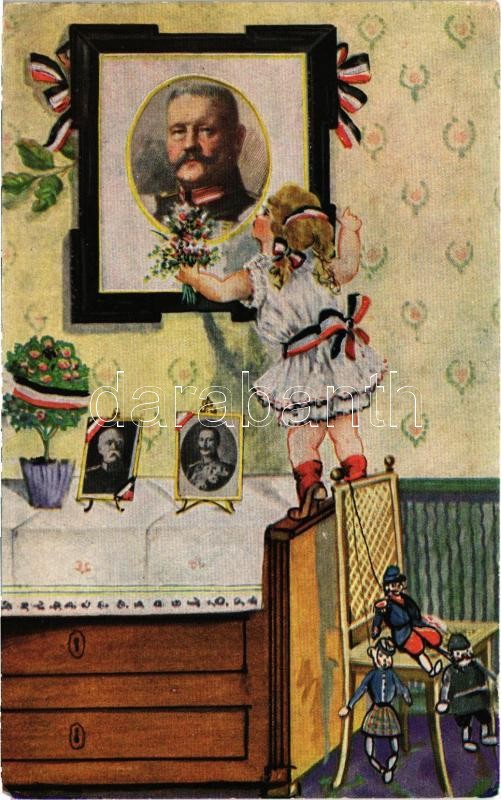 Leírás: O du mein Hindenburg / WWI German military art postcard, patriotic propaganda, Field Marshal Hindenburg (EM)